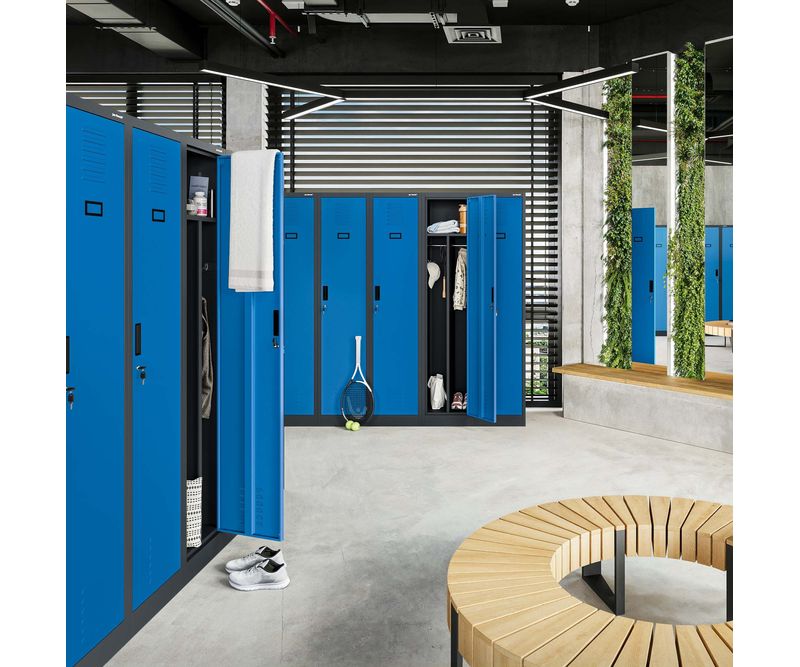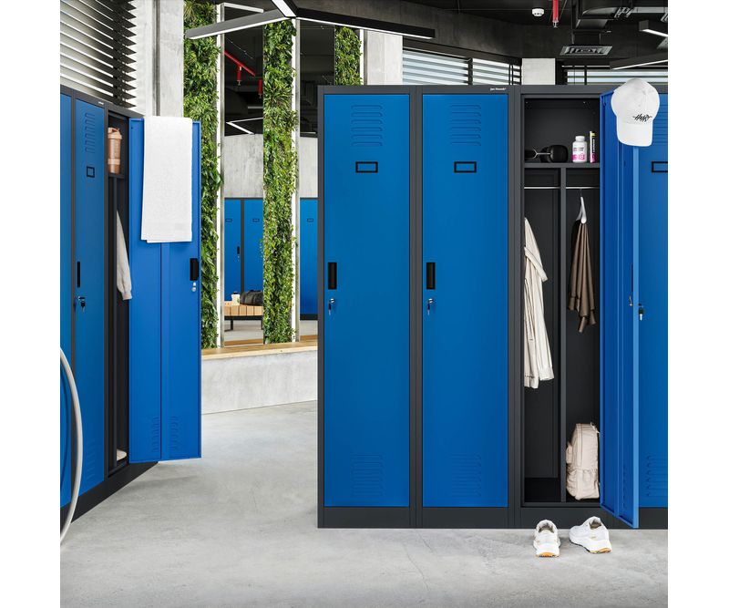 MobilierMobilier metalicVestiare metaliceDulap social cu patru compartimente KACPER, 800 x 1800 x 500 mm, albastru-antracit