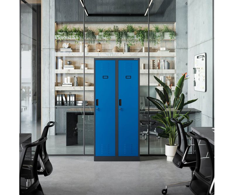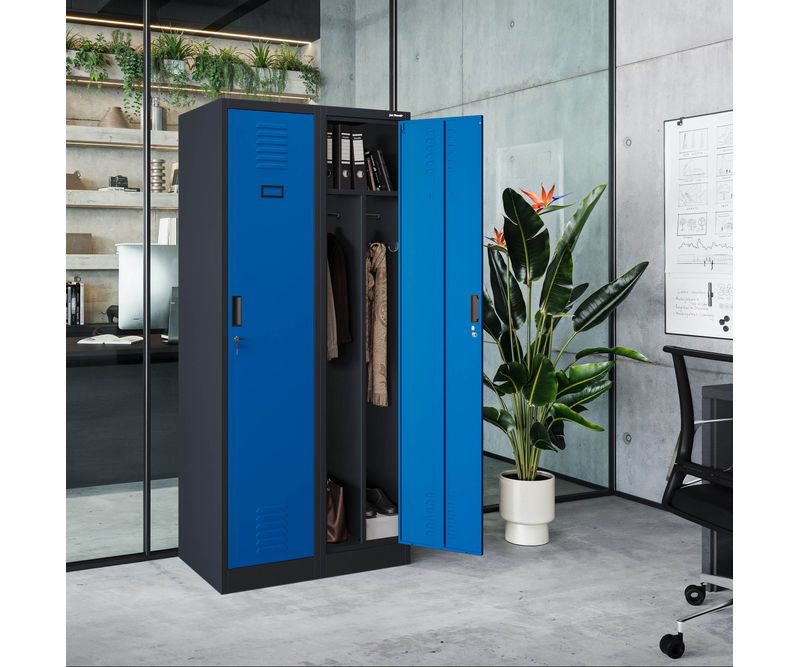 Dulap social cu patru compartimente KACPER, 800 x 1800 x 500 mm, albastru-antracit