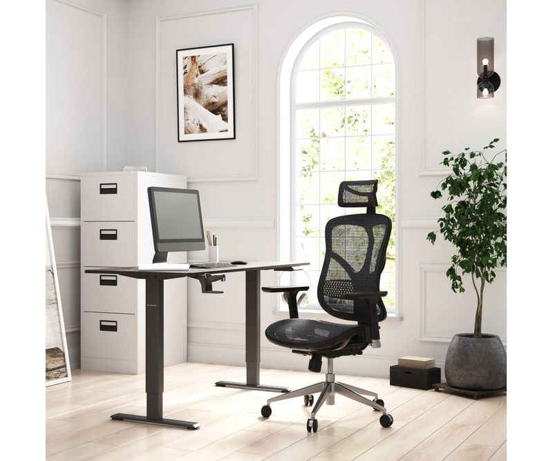CARACTERISTICI PRINCIPALE: Forma ergonomica Suport perfect pentru coloana vertebrala Fabricat din plasa rezistenta si respirabila Inclinare a spatarului de pana la 135° Tetiera reglabila Suporturi pentru brate reglabile in 3 directii Capacitate maxima de incarcare 140 kg SCAUN DE BIROU DIABLO V-BASIC: NEGRU Iata un scaun de birou ergonomic care se distinge prin constructia sa subtire si designul fenomenal. Combinatia de accente moderne si clasice evidentiaza faptul ca scaunul de birou Diablo V-Basic arata foarte bine atat in interioarele traditionale, cat si in cele moderne. Datorita manoperei de cea mai inalta calitate, fotoliul va va oferi confort deplin si ergonomie pro-sanatate la un nivel fara precedent.ALIATUL COLOANEI D-VOASTRA VERTEBRALE Cand va asezati pe scaunul ergonomic V-Basic, simtiti imediat un sprijin profesional pentru coloana D-voastra vertebrala. Acest lucru se datoreaza spatarului si tetierei conturate. Datorita designului bine gandit, nu trebuie sa va mai faceti griji, deoarece corpul D-voastra isi preia singur pozitia corecta. Acest lucru va contribui cu siguranta la bunastarea D-voastra si puteti spune adio durerilor de spate sau amortelii musculare.PUTEREA CONFORTULUI CARE PROMOVEAZA SANATATEA Scaunul nostru de birou ergonomic combina confortul ridicat si solutiile de promovare a sanatatii cu un design distinctiv. Datorita solutiilor inovatoare, acesta ofera siguranta si confort, chiar si dupa ore lungi de munca sau studiu la birou.Reglarea inaltimii scaunului in sus si in jos asigura adaptarea exacta a scaunului la forma si dimensiunea utilizatorului. Mecanismul permite, de asemenea, leganarea relaxata.Suporturile pentru brate Armtech™ Hybrid SoftTouch cu reglare de la dreapta la stanga, de sus in jos si din fata in spate sporesc stabilitatea corpului si usureaza tensiunea de pe umeri, antebrate si incheieturi. Partea lor superioara este acoperita cu spuma, astfel incat sunt extrem de moi si confortabile.Tetiera, care este reglabila in inaltime si unghi de inclinare, ofera un sprijin solid pentru gat si stabilizeaza coloana vertebrala, asigurand in acelasi timp un nivel ridicat de confort la birou.Mecanismul Tilttech™ Gear permite reglarea unghiului spatarului in patru planuri (90°, 115°, 125°, 135°). Spatarul reglabil pe inaltime sustine intreaga coloana vertebrala si face ca pozitia adoptata automat sa fie nu numai sigura, ci si extrem de confortabila.Plasa V-Mesh aerisita si durabila care formeaza scaunul si spatarul face ca lucrul sa fie complet confortabil chiar si in zilele deosebit de calduroase. SCAUN V-BASIC ERGONOMIC ROBUST Cadrul din aluminiu, liftul robust si mecanismul de amortizare fiabil Air Damper™ System sunt cele trei puncte forte ale scaunului ergonomic V-Basic. Toate elementele se combina pentru a crea o baza robusta care garanteaza o functionare fara probleme chiar si cu o greutate de pana la 140 kg.ROTI BLANDE CU PODEAUA Scaunul ergonomic V-Basic este echipat cu roti PFC™ 360 din cauciuc, astfel incat va puteti deplasa pe orice suprafata fara griji. Pe langa absenta zgarieturilor pe podea, veti fi multumit de functionarea silentioasa si lina.O ABORDARE MODERNA A UNUI CLASIC Fotoliul de birou Diablo V-Basic combina constructia subtire, designul original si designul fenomenal. Combinatia de negru mat si elemente argintii lucioase confera fotoliului un aspect traditional imbinat cu tendinte atemporale. Calitatea inalta a manoperei si a materialelor utilizate va asigura ca modelul Diablo V-Basic va va oferi ergonomie si confort pentru multi ani de acum inainte.
