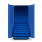 DAREK - dulap scule matalic Daca sunteti in cautarea unui mod de a va depozita sculele, care va schimba activitatea atelierului sau a fabricii D-voastra si care va face accesul la toate obiectele necesare usor si confortabil, asigurati-va ca va uitati la dulapul nostru pentru scule DAREK. Datorita acestui model incapator, munca de zi cu zi va deveni mult mai practica. Recomandam dulapul din metal DAREK pentru urmatoarele aplicatii: faciliteaza munca in atelierele de vulcanizare se va dovedi util in firme de constructii mari si mici este conceput pentru atelierele de reparatii auto echipeaza orice spatii de productie perfect pentru atelierele mestesugarilor. Dulap de scule DAREK - potrivit pentru toate conditiile de lucru Dulapul de scule din metal DAREK este cel mai mare model dintre toate tipurile de mobilier de atelier marca Jan Nowak. Se distinge in primul rand prin constructia sa robusta cu o greutate de pana la 140 kg, datorita careia acest model isi va dovedi valoarea chiar si in conditii dificile. In plus, am echipat dulapul metalic DAREK cu 7 sertare solide, un compartiment de depozitare incapator si suprafata perforata a peretilor interiori, ceea ce face ca aceasta piesa de mobilier sa fie extrem de functionala si sa usureze mult munca de zi cu zi intr-un atelier sau fabrica. Dulapul este fabricat din tabla de otel laminat la rece cu grosimea de 1,1 mm, ceea ce il face extrem de rezistent la deteriorari mecanice. Corpul solid face ca modelul DAREK sa fie sigur si stabil, chiar si sub incarcatura maxima, iar incuietoarea de inalta calitate garanteaza o protectie adecvata a accesoriilor si uneltelor D-voastra. REZISTENT - datorita corpului solid, productiei din tabla de cea mai buna calitate si a celor sapte sertare cu o capacitate de incarcare de pana la 40 kg, dulapul din otel DAREK este o piesa de mobilier extrem de rezistenta si sigura. SIGUR - constructia robusta din tabla groasa si o incuietoare cu suruburi de inalta calitate fac ca dulapul sa fie perfect sigur pentru uneltele si obiectele pe care le contine. FUNCTIONAL - dulapul are 7 sertare robuste, un compartiment de depozitare spatios si pereti interiori perforati, ceea ce face ca utilizarea zilnica sa fie simpla si practica Dulap metalic DAREK - date tehnice Greutate (inclusiv ambalajul): 142 kg Inaltime: 185 cm Latime: 92 cm Adancime: 50 cm Inaltimea usii: 172 cm Latimea usii: 42 cm Cu noi castigati mai mult: Calitate superioara Garantie de calitate - Cele mai bune materiale si fara compromisuri in manopera. Pret extrem de avantajos Aprobat de PZH Este bine de stiut: Montare usoara Instructiuni clare incluse * dulapul nu include echipamente suplimentare vizibile in imagine (rafturi din plastic, cutii, scule, ergobox, truse, etc.) Mobilier de birou JAN NOWAK Marca JAN NOWAK - unul dintre cei mai mari distribuitori de dulapuri metalice din intreaga Europa.
