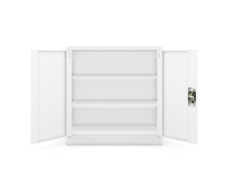 Dulap pentru dosare cu cheie JAN NOWAK BEATA Daca sunteti in cautarea unui dulap pentru dosare cu cheie, cu dimensiuni compacte, modelul BEATA este ideal. Constructia robusta din otel cu grosimea de 0,6 mm, doua rafturi reglabile si o incuietoare robusta vor transforma depozitarea documentelor intr-o pura placere. Se va potrivi chiar si intr-un spatiu mic, dar va face fata provocarilor si ca parte a unui set de mobilier de birou. Dulapul gri BEATA este rezistent, rezistent la deteriorari si, in acelasi timp, foarte placut din punct de vedere estetic. Este ideal pentru depozitarea documentelor in birouri, cabinete sau arhive, a medicamentelor in unitatile medicale, a produselor cosmetice in saloanele de infrumusetare si a uneltelor in ateliere si depozite. Explorati posibilitatile dulapului pentru dosare BEATA In ciuda dimensiunilor sale mici, dulapul cu usi BEATA este extrem de spatios. Doua rafturi ofera trei nivele cu spatiu de pana la 25 de dosare. Constructia din otel este extrem de robusta, astfel incat greutatea maxima pentru un singur nivel este de pana la 50 kg. Micul dulap are mult mai multe intrebuintari decat depozitarea documentelor. Am facut posibila ajustarea inaltimii rafturilor, astfel incat sa puteti incadra o gama larga de obiecte fara probleme. Reglarea in trepte de 25 mm va ofera libertate totala pentru a crea interiorul dulapului de dosare. Dulap metalic robust Pentru spatii cum ar fi birourile, oficiile, atelierele, mobilierul functional creat din metal este cel mai potrivit. Dulapul de dosare BEATA nu va ceda nici in cele mai grele conditii, datorita otelului de inalta calitate, pe care l-am acoperit cu vopsea pulbere. Aceasta combinatie a facut posibila obtinerea unei rezistente excelente la deteriorare. In plus, dulapul cu usi are o culoare estetica placuta si este extrem de usor de intretinut. Orice murdarie poate fi indepartata cu o carpa umeda si putin detergent. Dulapul de arhivare BEATA este adaptat la cerintele RODO 2018 si va stoca in siguranta documentele care contin date cu caracter personal. Doar persoanele autorizate vor avea acces la elementele stocate, deoarece continutul este protejat de un mecanism de blocare in 3 puncte. Odata cu achizitionarea dulapului gri BEATA, veti primi 2 chei. Scopul nostru este de a face ca dulapurile noastre cu cheie sa reziste cat mai mult timp posibil. Din acest motiv, acordam o mare importanta unei manopere atente si calitatii ridicate a componentelor utilizate. Solutiile de depozitare a documentelor JAN NOWAK sunt aprobate de PZH. Dulap gri BEATA cu usi: Inaltime: 93 cm Latime: 90 cm Adancime: 40 cm Greutate: 24 kg Culoare: alb Capacitate maxima de incarcare 200 kg Trei niveluri spatioase de depozitare cu rafturi reglabile Fabricat din otel acoperit cu vopsea pulbere Garantie de calitate Expedim dulapul pentru dosare BEATA pe piese. Asamblarea mobilierului este usoara si dureaza cateva minute. Inainte de asamblare, va recomandam sa cititi instructiunile de pe hartie sau sa folositi materialul video.