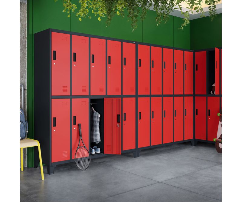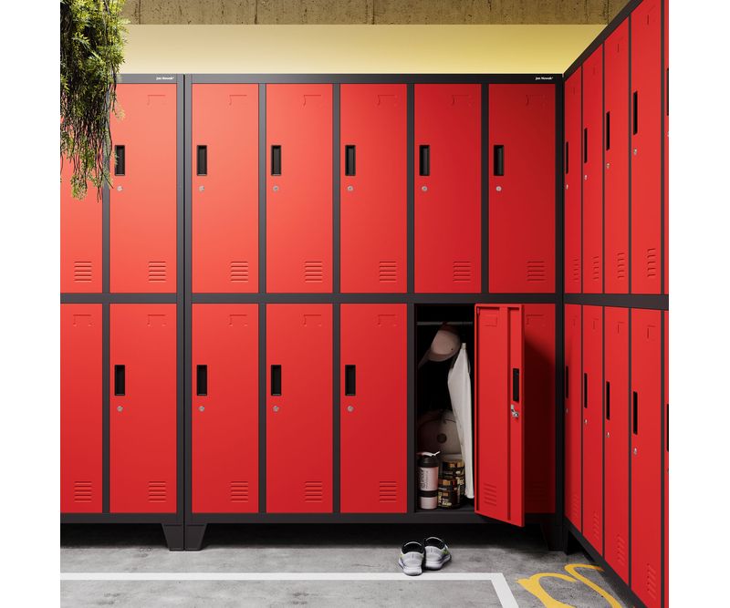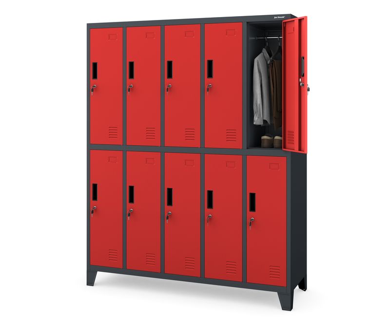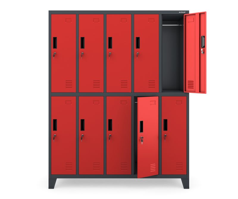 Dulap vestiar JAN NOWAK model BARTEK - dulap BHP pentru haine cu 10-usi, pentru atelier, pentru firma Daca doriti sa le garantati angajatilor sau clientilor D-voastra un confort maxim, completati vestiarul firmei D-voastra cu dulapul rezistent BARTEK. Datorita designului sau compact, aceasta piesa de mobilier va gazdui hainele si obiectele personale a pana la zece persoane, economisind in acelasi timp spatiu utilizabil in vestiarul D-voastra. Descoperiti cateva dintre utilizarile dulapului metalic BARTEK: dulapurile adanci, imbinate intre ele, cu tije incorporate, permit depozitarea convenabila a hainelor, echipamentelor de lucru, uneltelor, obiectelor personale si documentelor datorita fabricarii sale solide, modelul BARTEK poate fi utilizat pentru dotarea garajelor si a unitatilor de productie designul unic face ca dulapul sa fie potrivit pentru hoteluri, sali de sport, cluburi de fitness si saloane de infrumusetare de asemenea, este conceput pentru scoli, spitale, clinici si la piscine. Dulapul vestiar elegant BARTEK - incredere in solutii confortabile Dulapul vestiar BARTEK este un produs de inalta calitate fabricat din tabla groasa de otel acoperit cu vopsea pulbere. Acest model are un aspect deosebit de original si va infrumuseta cu siguranta orice vestiar. Dulapul vestiar prezentat este stabil si se distinge prin rezistenta sa ridicata la deteriorari mecanice. Acesta are 10 dulapuri verticale care pot fi inchise cu cheie, ceea ce face posibila depozitarea documentelor care contin date cu caracter personal, in conformitate cu reglementarile actuale RODO 2018. Datorita orificiilor din dulapuri se asigura o circulatie adecvata a aerului, astfel incat hainele si obiectele personale depozitate sa fie ventilate corespunzator. Suporturile pentru carti de vizita de pe usa fiecarui dulap permit o personalizare rapida si usoara. SOLID - Dulapul vestiar BARTEK este fabricat din tabla groasa de otel, are o constructie extrem de stabila SIGUR - Fiecare dulap este prevazut cu o incuietoare de inalta calitate FABRICAT CU ATENTIE - Poate fi utilizat pentru haine sau obiecte personale a pana la zece persoane CONVENABIL - Fiecare dulap este prevazut cu o bara pentru a sustine umerase suplimentare. AERISIT - Dulapul BARTEK are orificii de ventilatie, ceea ce protejeaza eficient continutul de umiditate Dulap vestiar BARTEK - informatii tehnice Dimensiune: Greutate (inclusiv ambalajul): 66 kg Inaltime: 172 cm Latime: 136 cm Adancime: 45 cm Dimensiunea unui singur dulap: Inaltime: 72 cm Latime: 20 cm Adancime: 42 cm Mai multe beneficii! Certificat PZH Garantie de calitate! Raport calitate-pret extrem de bun si calitate superioara In conformitate cu reglementarile RODO 2018 Este bine de stiut: Livrare incepand de la doar 395,00 RON Simplu, rapid, cu montaj individual Instructiuni clare incluse Marca JAN NOWAK - unul dintre cei mai mari distribuitori de dulapuri metalice din intreaga Europa.