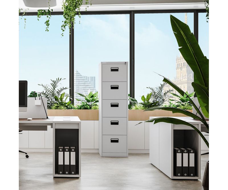 SARA - dulap metalic de birou Dulapul cu sertare din otel SARA este o revolutie in domeniul depozitarii documentelor. Dimensiunile sale discrete ascund un interior incapator si functional, datorita caruia veti putea sorta si depozita in siguranta toate dosarele necesare. Aveti incredere in puterea solutiilor compacte si echipati-va biroul cu un dulap metalic SARA de incredere. Explorati cateva dintre numeroasele utilizari ale dulapului nostru de depozitare: securizeaza chiar si cele mai importante documente in firme de avocatura, cooperative sau agentii de locuinte fiabile pentru stocarea retetelor si a dosarelor pacientilor in spitale, clinici, cabinete medicale si cosmetice, ambulatorii si laboratoare medicale conceput pentru colectarea documentatiei in birourile de contabilitate sau in departamentele de contabilitate si resurse umane din companiile de ateliere, de productie sau de logistica stocarea si securizarea tuturor tipurilor de documente in secretariatele unitatilor de invatamant. Dulap cu sertare modern SARA - o descoperire in domeniul arhivarii! Combinatia dintre sertarele incapatoare si latimea minima face din dulapul metalic SARA un model absolut imbatabil. Asadar, daca va doriti un dulap cu incuietoare in care sa va puteti organiza si depozita documentatia fara a pierde inutil spatiul de birou, alegeti corect si achizitionati dulapul metalic SARA. Incuietorile de blocare a fiecarui sertar va permit sa depozitati documente care contin date cu caracter personal, in conformitate cu cerintele actuale RODO 2018, in timp ce suporturile elegante pentru notite va permit sa sortati rapid continutul, in functie de necesitati. Am realizat modelul SARA din tabla de otel cu grosimea de 0,6 mm, astfel incat acesta prezinta o rezistenta ridicata la orice deteriorare, chiar si atunci cand este foarte incarcat. Dulapul este dotat cu sertare cu blocare, cu ghidaje silentioase, care faciliteaza si mai mult utilizarea produsului. Acestea au o functie de siguranta care impiedica scoaterea mai multor sertare in acelasi timp, astfel incat dulapul sa nu se incline in fata sub greutatea lor. UNIVERSAL - Am combinat structura clasica cu solutii vizuale originale, datorita carora modelul SARA va fi un accesoriu perfect pentru orice interior SIGUR - Datorita sertarelor cu incuietoare, dulapul nostru metalic permite depozitarea documentatiei in conformitate cu normele actuale RODO 2018 DURABIL - Dulapul are o constructie stabila si, datorita otelului acoperit cu vopsea pulbere de cea mai buna calitate, este extrem de robust,si ne concentram pe calitatea produselor, motiv pentru care ne asiguram ca sunt durabile si fiabile. INCAPATOR - In ciuda dimensiunilor sale discrete si compacte, modelul SARA are sertare surprinzator de spatioase Dulap metalic SARA - date tehnice Greutate (inclusiv ambalajul): 51 kg Capacitatea de incarcare a sertarului: 45 kg Inaltime: 162,5 cm Latime: 46cm Adancime: 62cm Dimensiunile unui singur sertar: latime: 38 cm inaltime: 29 cm adancime: 51cm Dimensiunile usii unui singur sertar: latime: 40 cm inaltime: 29 cm Cu noi, veti castiga mai mult: Pret extrem de avantajos Garantie de calitate Aprobat PZH In conformitate cu reglementarile RODO 2018 Merita stiut: Simplu si rapid de asamblat Instructiuni clare incluse Mobilier de birou JAN NOWAK Marca JAN NOWAK - unul dintre cei mai mari distribuitori de dulapuri metalice din intreaga Europa.