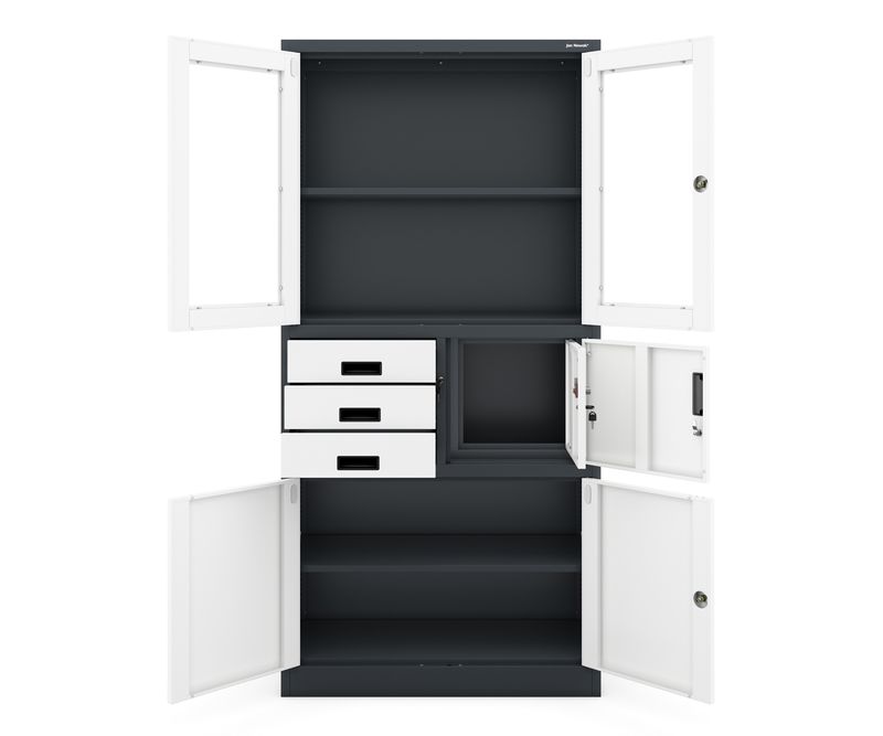 FILIP - dulap metalic cu seif Dulap din otel FILIP, seif cu incuietoare Dulapul din otel cu seif cu incuietoare FILIP este de neegalat in cateva dintre cele mai importante categorii pentru clienti. Este extrem de durabil, ofera un sentiment de siguranta, ofera multe posibilitati de aranjare si poate fi utilizat in multe scopuri diferite. Fie ca veti depozita in el documente sau alte obiecte legate de afaceri - acesta va fi eficient 100%. Clientii care au ales dulapul FILIP il folosesc ca: dulap de arhivare pentru birou (companii, birouri, secretariate, locuinta) dulap medical pentru medicamente (cabinete medicale, clinici private) dulap scule (ateliere, depozite) Dulap cu incuietoare FILIP - Solutii de siguranta Dulapul cu incuietoare FILIP este un model care se comporta exceptional de bine in toate conditiile. De la designul sau, care permite dulapului sa se integreze in orice mediu de birou, pana la multifunctionalitatea sa. Acesta este echipat cu un dulap de arhivare cu sticla si optiuni suplimentare de securitate si depozitare pentru diverse materiale. Dulapul nostru metalic a fost prevazut cu gauri pe partea din spate si pe peretii laterali pentru a putea fi fixat pe perete. Acest lucru va spori securitatea utilizarii zilnice. Gaurile din partea superioara a dulapului fac posibila atasarea unei extensii. Manopera robusta - Pentru fabricarea dulapului de birou FILIP au fost folosite componente de cea mai buna calitate, inclusiv otel de 0,6 mm grosime, care a fost acoperit cu vopsea pulbere. Dulapul este rezistent la deteriorari mecanice. A fost conceput pentru a va servi fara probleme timp de multi ani. Securitate deplina - La proiectarea dulapului, au fost luate in considerare nevoile utilizatorilor sai, una dintre cele mai importante fiind un nivel adecvat de securitate pentru continut. Dulapul FILIP are o vitrata, sertare, un seif si un dulap suplimentar, care sunt inchise cu incuietori separate in 3 puncte. Seiful poate fi blocat suplimentar cu o incuietoare cu cifru combinat. Practic de utilizat - Dulapul de birou FILIP va permite sa depozitati nu numai dosare, desi puteti depozita pana la 30 in el. Datorita sertarelor si a seifului, puteti depozita si alte obiecte necesare pentru biroul sau afacerea D-voastra. Dulap metalic FILIP - dimensiuni de baza inaltime 185 cm latime 90 cm adancime 40 cm greutate 52.4 kg Ce primiti? Garantie de calitate produs cu certificat PZH produs conform cu RODO 2018 Colectia JAN NOWAK Mobilierul de birou din colectia JAN NOWAK este un bestseller in categoria mobilier de birou nu doar in Polonia. Ridicam constant standardele de calitate, datorita carora suntem astazi unul dintre cei mai mari furnizori de dulapuri din otel din Europa.