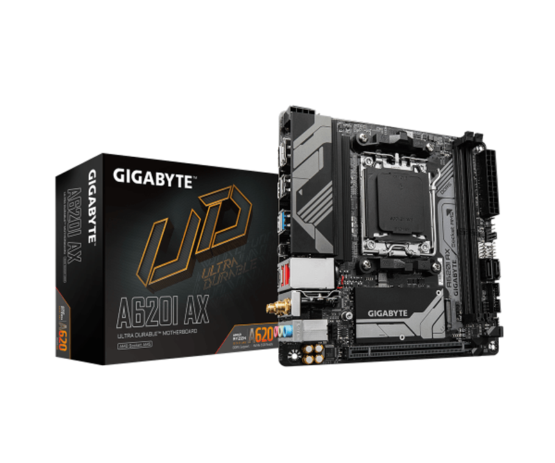 MB GIGABYTE A620I AX (rev. 1.0) AM5, 2xDDR5, 1x Display Port, 1x HDMI, mini-ITX https://www.gigabyte.com/Motherboard/A620I-AX-rev-10/sp#sp