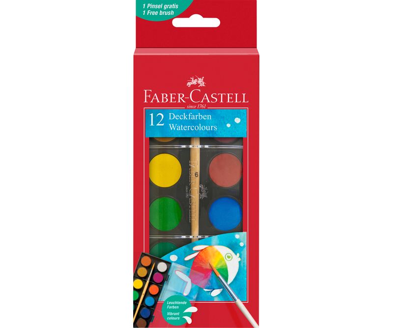 Acuarele Faber-Castell 12 culori, 24 mm + pensulă