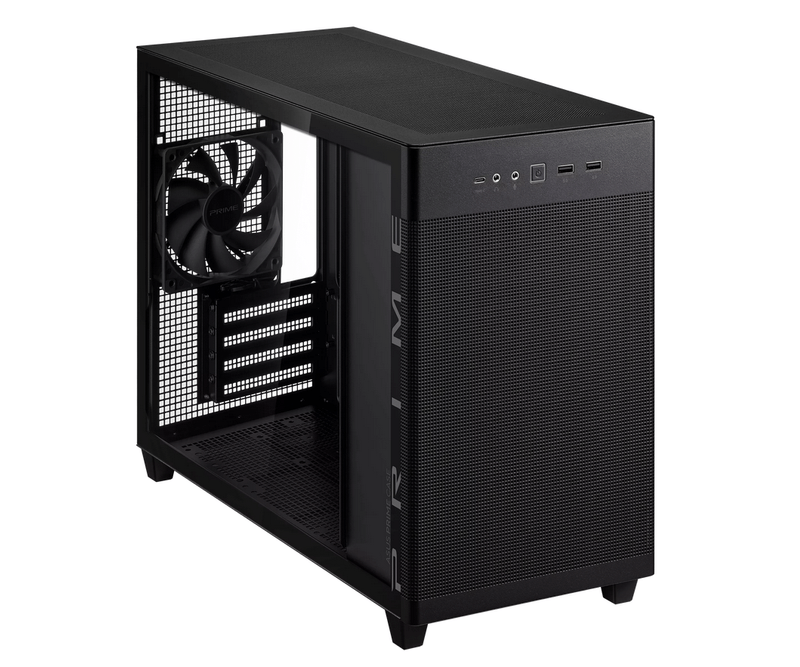 Carcasa ASUS AP201 Small Tower NEGRU, Tempered Glass Sloturi Expansiune 4, Drive Bays: 3x3.5/2.5 1x2.5, Ventilatoare Suportate: 4 (spate: 1x120mm, sus: 3x120mm sau 2x140mm), Ventilatoare Incluse: 1 (spate: 1x120mm), Format Placa De Baza Suportat: Mini-ITX, Micro-ATX, Lungime Maxima Placa Video: 338mm, Inaltime Maxima Cooler Procesor: 170mm