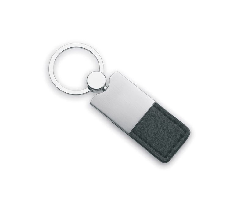 Breloc cu capăt metalic lucios şi bandă din înlocuitor PU.