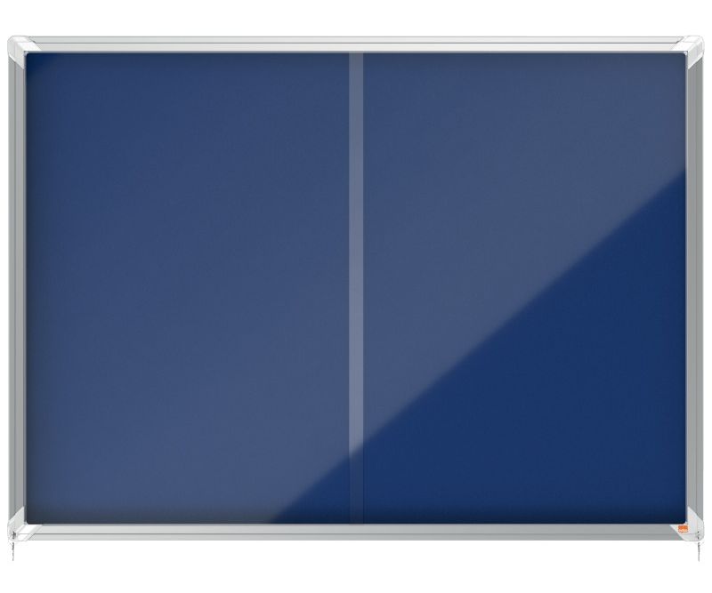 Articole de birouProduse pentru scoalaSala de clasaComunicare si prezentareSolutii de prezentareSolutii de prezentareAvizier NOBO Premium Plus, interior, material textil, 18x A4, geam glisant si cheie, albastru
