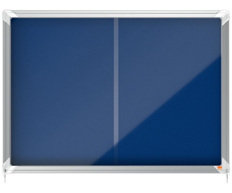 Avizier Nobo din material textil, pentru interior, cu ușă glisantă din sticlă și blocare pe colț. Încadrat într-o ramă de aluminiu cu design modern, ce se fixsează pe perete atât prin colțuri, cât și cu ajutorul unei șine. Suprafață din material textil rezistent, pentru a afișa în siguranță documentele. Dimensiuni: 8xA4, 925x668 mm.