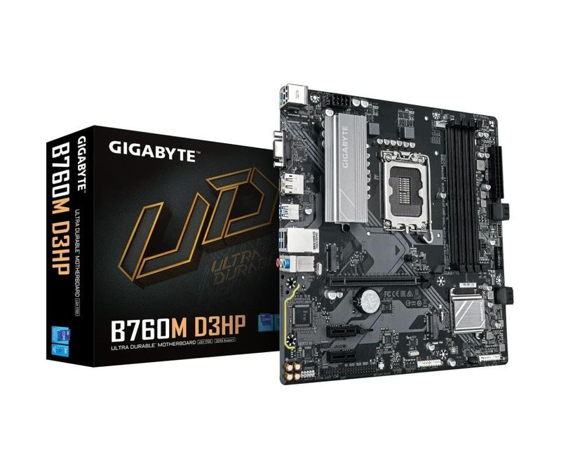 Placa de Baza GIGABYTE B760M D3HP LGA1700, 4x DDR5, 1x D-Sub 1x HDMI 1x DP, 1x PCIE 4.0 x16 2x PCIE 3.0 x1, 2x M.2, 4x SATA 6GB/s, mATX
