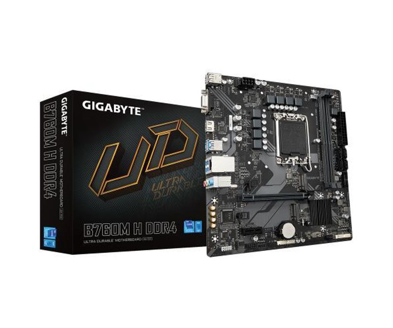 Placa de baza Gigabyte B760M H LGA1700, 2x DDR4, 1x D-Sub, 1x HDMI, 1x PCIe x16, 1x PCIe x1, 2x M.2, 4x SATA 6Gbps, 1Gbps LAN, mATX