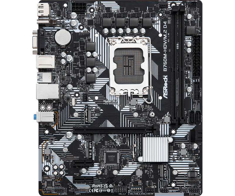 Placa de baza Asrock B760M-HDV/M.2 DDR4, 2x DDR4, frecventa maxima 5333MHz, 1x DisplayPort, 1x HDMI, 1x PCIe x16, 2x PCIe x1, 2x M.2, 4x SATA3 6Gbs, LAN 1Gbps, microATX