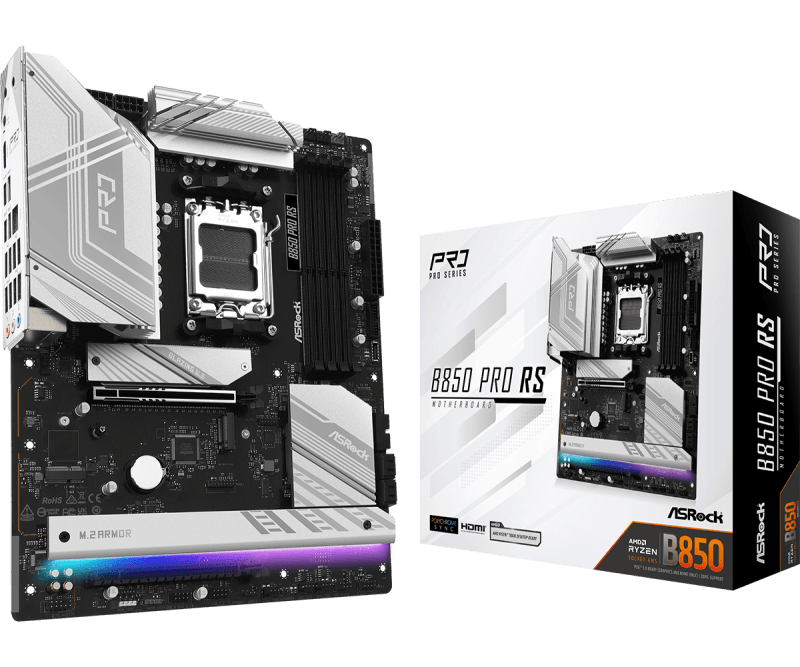 Placa de Baza ASROCK B850 PRO RS AM5, 4x DDR5, 1x HDMI 1x USB3.2, 1x PCIE 5.0 x16 1x PCIE 4.0 x16, 5x M.2, 2x SATA 6GB/s, ATX