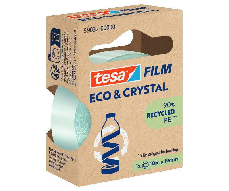 Banda adeziva transparenta PET reciclat 19 mm x 10 m – Tesa 59032