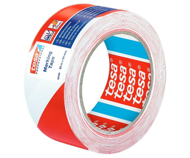 Bandă Adezivă de Marcare Tesa 60760 – 50mm x 33m, Alb/Roșu