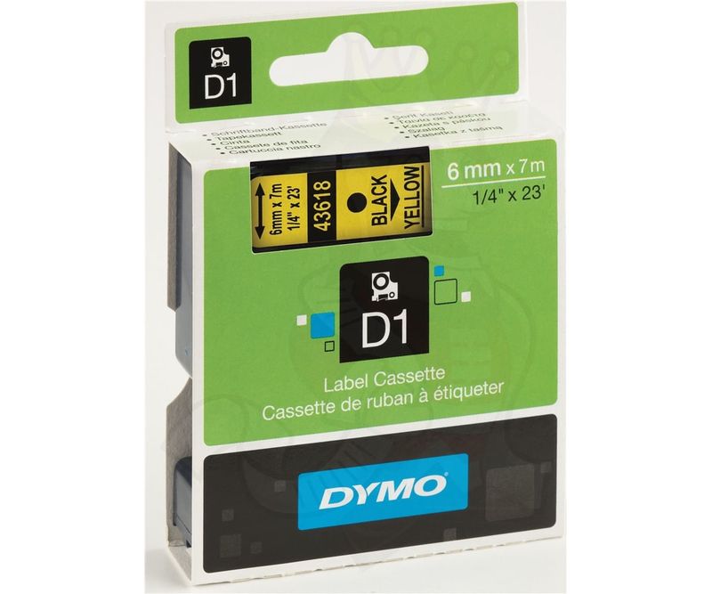 Banda D1, 6mm x 7m, Dymo-negru/galben.