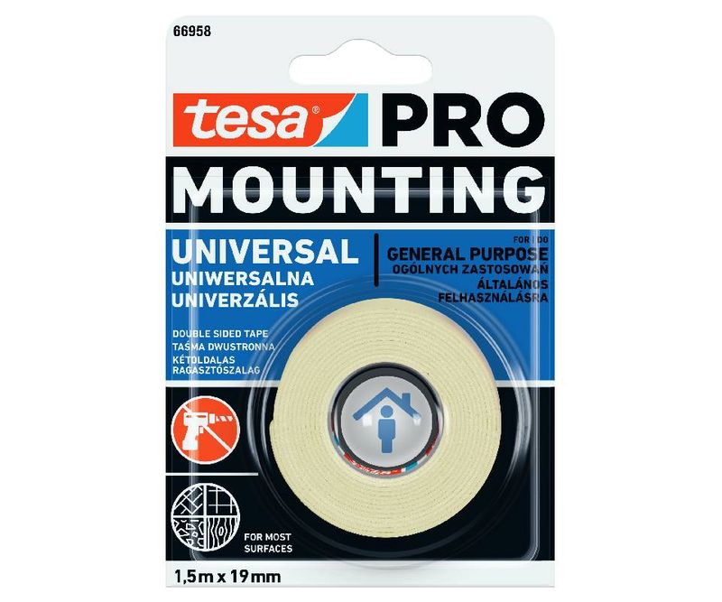 Banda tesa PRO Montaj Universal este o banda multifuncţionala indispensabila pentru fiecare mester care lucreaza in spaţii interioare. Fixaţi obiecte usoare, cum ar fi canalele de cablu, montarea elementelor decorative si a plintei, sigura si permanent pe majoritatea suprafeţelor, fara a mai fi nevoie de gauri sau deteriorari ale structurii peretelui. Banda tesa PRO Montaj Universal este cu adevarat versatila! Soluţia inteligenta pentru o lucrare rapida si simpla.