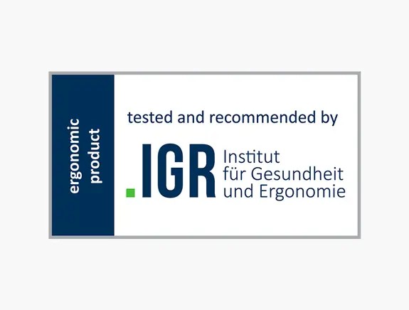 IGR (Institutul pentru Sănătate și Ergonomie) acordă distincția doar produselor care îndeplinesc criteriile de utilizare și adaptabilitate ergonomică.