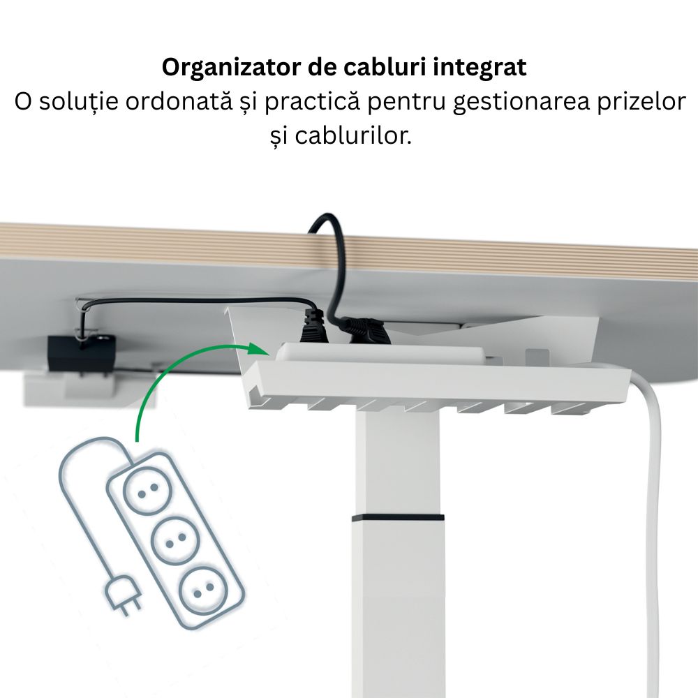 ✔ Organizare eficientă a cablurilor - suport pentru priză și 4 cleme autoadezive incluse pentru un spațiu ordonat