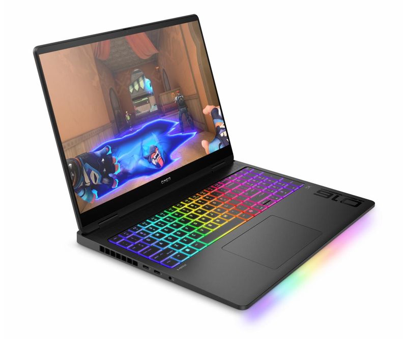 Laptop HP OMEN 16-ah0003nn, 16.0 inch WQXGA (2560x1600) UWVA OLED LBL Narrow Border flat 400 nits, Intel Core U9-275HX 24-Core (2.7GHz, up to 5.4GHz, 36MB), video dedicat NVIDIA GeForce RTX 5090 24GB, RAM 64GB DDR5 5600Mhz (2x32GB), SSD 2TB PCIe Gen4 NVMe, no ODD, DTS:X Ultra, doua difuzoare, HP Audio Boost, HyperX, Webcam True Vision 1080p FHD IR & TNR, LAN 10/100/1000, WLAN Intel Wi-Fi 6E AX211 (2x2), Bluetooth 5.3, TPM, Porturi: 2x USB SuperSpeed Type-A 10Gbps (1x Sleep and Charge)/ 2x USB Type-C 40Gbps (power delivery/DisplayPort 1.4/Sleep and Charge)/ 1x HDMI 2.1/ 1x RJ-45/ 1x headphone/microphone, adaptor 330W, Baterie 6 celule Li-ion polymer 83Wh, Tastatura iluminata din fundal in RGB cu taste numerice si functie anti-ghosting, Shadow Black, Greutate 2.75 kg, Dimensiuni 35.65 x 26.9 x 2.29 cm, Free DOS, 2yw