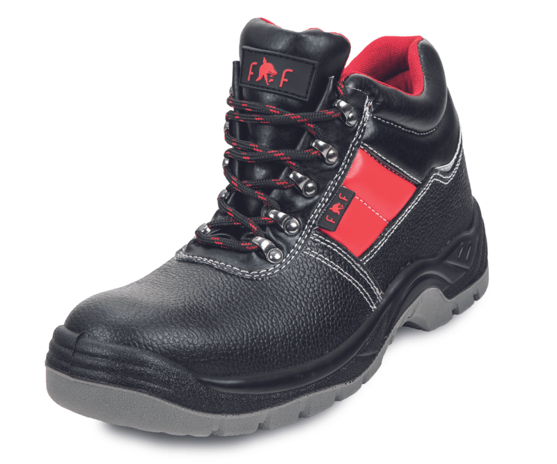 Material bombeu: metal Materialul lamelei de protecție: metal Material superior: piele Material talpă: dublă densitate PU Material pentru căptușeala încălțămintei: polyester mesh Standarde: EN ISO 20345 (S3 FO SR)