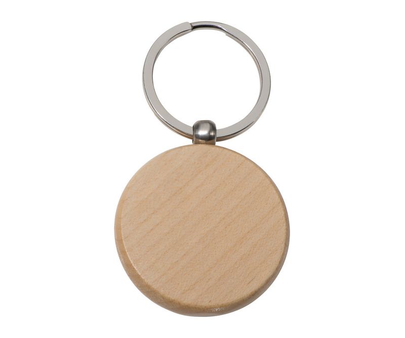 Breloc rotund din lemn de fag cu inel metalic