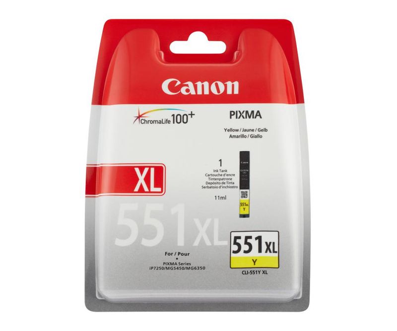 Cartus cerneala Canon CLI-551XL, yellow, capacitate 11ml, pentru Canon Pixma IP7250, Pixma IP8750, Pixma IX6850, Pixma MG5450, Pixma MG5550, Pixma MG6350, Pixma MG6450, Pixma MG7150, Pixma MX925.