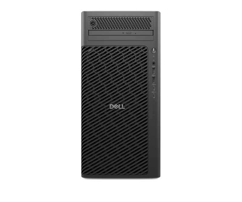 Dell Pro Max Tower T2, 500W (80 Plus Platinum) PSU, ENERGY STAR Qualified, EPEAT 2018 Registered (Gold) , Intel Core Ultra 7 265 (30 MB cache, 20 cores, 20 threads, 1.8 GHz to 5.3 GHz, 65W, NVIDIA(R) RTX(TM) A1000, 8 GB GDDR6, 4 mDP to DP adapters, 32GB: 2 x 16 GB, DDR5, 5600 MT/s, non-ECC, 1TB SSD TLC with DRAM M.2 2280 PCIe Gen4 SED Ready, No Optical Drive, Intel Rapid Storage Technology Driver, Intel vPro Active Magagement Technology, Premium CPU Air Cooler, Media Card Reader, Dell Wired Mouse - MS116 - Black, Dell Wired Keyboard - KB216 - US International (QWERTY) - Black, External ports: Network port: 1 x RJ45 ethernet port (1 Gbps), USB ports: 1 x USB 3.2 Gen 1 (5 Gbps) port, 1 x USB 3.2 Gen 1 (5 Gbps) port with PowerShare, 1 x USB 3.2 Gen 2 (10 Gbps) Type-C port, 1 x USB 3.2 Gen 2x2 (20 Gbps) Type-C port with PowerShare, 2 x USB 2.0 (480 Mbps) ports with SmartPower, 2 x USB 3.2 Gen 2 (10 Gbps) ports, 1 x Thunderbolt4 port, 1 x USB 3.2 Gen 2x2 (20 Gbps) Type-C port, Audio port: 1 x global headset jack, Video port(s): 2 x DisplayPort 1.4a HBR3 ports, Media-card reader: 1 x SD 7.0 Express-card slot (optional), Power-adapter port: 1 x power-cable connector, Security-cable slot: 1 x Kensington security-cable slot, Internal slots: M.2: 1 x M.2 2230 slot for WiFi and Bluetooth combo card, 3 x M.2 2230/2280 slots for solid-state drive, SATA: 3 x SATA 3.0 slot for 3.5- inch hard-disk drive, 1 x SATA 3.0 slot for slimline optical drive, PCIe: 1 x PEG full-height Gen5 PCIe x16 slot, 1 x full-height, half- length Gen3 x4 PCIe closed-end slot, 1 x full-height, full-length Gen4 x4 PCIe open-end slot, 1 x full-height, full-length Gen3 x4 PCIe open- end slot, Memory slots: 4 x UDIMM slots, Memory type: DDR5, Memory speed: 4400 MT/s : 2 DIMM-2R, 4800 MT/s : 2 DIMM-1R, 5600 MT/s : 1 DIMM-1R/2R, Maximum memory configuration: 128 GB, Memory size per slot: 8 GB, 16 GB, 32 GB, Windows 11 Pro, 3y ProSupport and Next Business Day Onsite Service