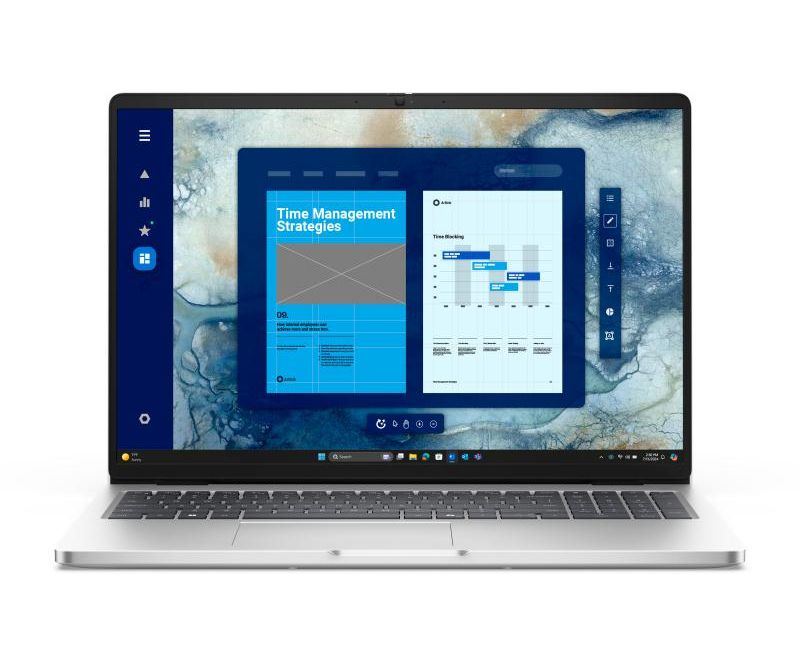 Laptop DELL PRO 16, 16, Non-Touch, FHD+, 300 nit, 45% NTSC, Anti-Glare, FHD+IR Cam, Fingerprint Reader, vPro, Platinum silver color, metallic finish, Intel(R) Core(TM) Ultra 7 265U vPro(R) (12 TOPS NPU, 12 cores, up to 5.3 GHz), Integrated Intel graphics, 16 GB: 1 x 16 GB, DDR5, 5600 MT/s (5200 MT/s with Intel Core processors), 512 GB SSD, Intel Wi-Fi 6E (6 where 6E unavailable) AX211, 2x2, 802.11ax, Bluetooth 5.3 wireless card, Intel(R) AX211 WLAN Driver, 65W AC adapter, USB Type-C, 3-cell, 55 Wh, ExpressCharge Capable, ExpressCharge Boost Capable, English International backlit Copilot key keyboard with numeric keypad, External ports: Network port: 1 x RJ45 ethernet port (1 Gbps), USB ports: 1 x USB 3.2 Gen 1 (5 Gbps) port, 1 x USB 3.2 Gen 1 (5 Gbps) port with PowerShare, 1 x USB 3.2 Gen 2 (10 Gbps) Type-C with DisplayPort Alt Mode/Power Delivery, 1 x Thunderbolt 4 (40 Gbps) port with DisplayPort Alt Mode/USB Type-C/USB4/Power Delivery, Audio port: 1 x global headset port, Video port(s): 1 x HDMI 2.1 Transition-minimized differential signaling (TMDS) port, Media-card reader Not applicable, Power-adapter port: 1 x 4.5 mm x 2.9 mm DC-in, Security-cable slot: 1 x security-cable slot (wedge-shaped), Internal slots: M.2: 1 x M.2 2230 slot for solid state drive, 1 x M.2 2230 slot for WLAN card, Wi-Fi/Bluetooth, Weight: Minimum - 1.92 kg (4.23 lb), Windows 11 Pro, 3y ProSupport and Next Business Day Onsite Service