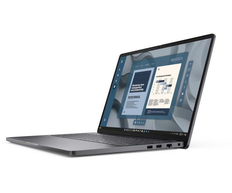 Laptop DELL PRO 16, 16, Non-Touch, FHD+ 1920 x 1200, 60Hz, IPS, Anti- Glare, 300 nit, 45% NTSC, FHD+IR Cam, Fingerprint Reader, Magnetite color, textured finish, AMD Ryzen(TM) 5 PRO 230 Processor (22 MB cache, 6 cores, 12 threads, up to 4.9 GHz, 16 TOPS NPU), AMD Radeon(TM) 760M graphics, 16 GB: 1 x 16 GB, DDR5, 5600 MT/s, 1 TB SSD, MediaTek Wi-Fi 6E MT7922, 2x2, 802.11ax, MU-MIMO, Bluetooth(R) wireless card, MT7922 WLAN Driver, 65W AC adapter, USB Type-C, 3-cell, 55 Wh, ExpressCharge Capable, ExpressCharge Boost Capable, English International backlit Copilot key keyboard with numeric keypad, External ports: Network port: 1 x RJ45 ethernet port (1 Gbps), USB ports: 1 x USB 3.2 Gen 1 (5 Gbps) port, 1 x USB 3.2 Gen 1 (5 Gbps) port with PowerShare, 1 x USB 3.2 Gen 2 (10 Gbps) Type-C with DisplayPort Alt Mode/Power Delivery, 1 x Thunderbolt 4 (40 Gbps) port with DisplayPort Alt Mode/USB Type- C/USB4/Power Delivery, Audio port: 1 x global headset port, Video port(s): 1 x HDMI 2.1 Transition-minimized differential signaling (TMDS) port, Media-card reader Not applicable, Power-adapter port: 1 x 4.5 mm x 2.9 mm DC-in, Security-cable slot: 1 x security-cable slot (wedge- shaped), Internal slots: M.2: 1 x M.2 2230 slot for solid state drive, 1 x M.2 2230 slot for WLAN card, Wi-Fi/Bluetooth, Weight: Minimum - 1.92 kg (4.23 lb), Windows 11 Pro, 3y ProSupport and Next Business Day Onsite Service