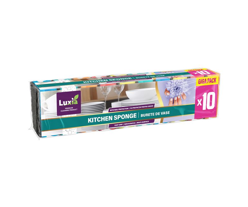 Bureții Luxia pentru vase sunt soluția practică și eficientă pentru curățarea vaselor, tigăilor și altor suprafețe din bucătărie. Realizați din spumă poliuretanică și polipropilenă (PP), aceștia sunt durabili, flexibili și rezistenți la uzura zilnică. Designul cu canelură facilitează îndepărtarea rapidă a murdăriei și grăsimii. Setul include 10 bucăți, fiecare cu dimensiuni compacte de 6 x 9 x 4 cm, disponibile în 5 culori diferite, ideale pentru uz casnic sau profesional.