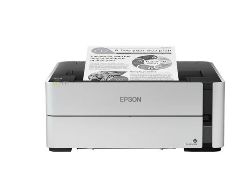 Imprimanta inkjet mono CISS Epson M1180, dimensiune A4, viteza max 39 ppm, Duplex, rezolutie printer 1200x2400dpi, alimentare hartie 250 coli, interfata: USB, Ethernet, WiFi, Wi-Fi Direct, consumabile: C13T03P14A ( 120ml) , doua recipiente de cerneala incluse, greutate: 4.3 kg.