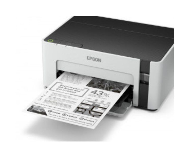 Imprimanta inkjet mono CISS Epson M1120, dimensiune A4, viteza max 32ppm, rezolutie printer 1440x720dpi, alimentare hartie 150 coli, volum maxim printare : 15000pagini/luna, interfata: USB 2.0, Wireless, consumabile: Ecotank MX1xx negru XL (6k/pag.), MX1xx negru L (2k/pag.),cerneala 6k/pag inclusa, greutate: 3.7kg, culoare echipament: alb/negru.