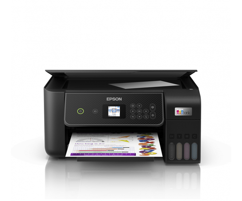 Multifunctional inkjet color Epson EcoTank CISS L3280, dimensiune A4 (Printare,Copiere, Scanare), printare borderless, viteza 33ppm alb- negru, 15ppm color, rezolutie 5760x1440 dpi, alimentare hartie 100 coli, scanner CIS rezolutie 1.200 x 2.400 DPI, interfata: USB ,WI-FI, Wi-Fi Direct, display 3,7 cm color consumabile: (black 8.1k, color 6.5k incluse), C13T00S14A, C13T00S24A, C13T00S34A, C13T00S44A.