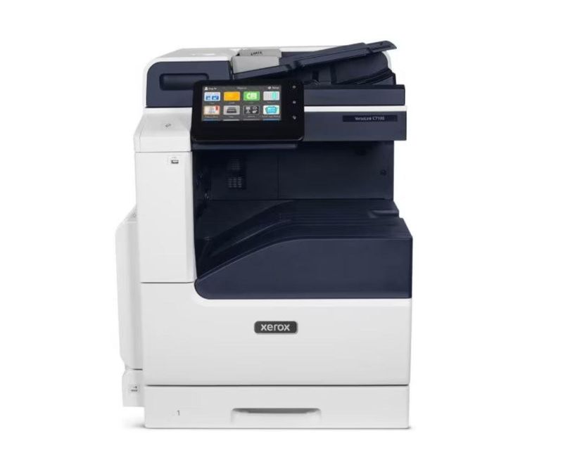 IOT laser color C7100. Pentru functionare trebuie sa se completeze cu unul din kiturile de viteza 097S05201 (20ppm), 097S05202(25ppm) sau 097S05197. (30ppm) ,Rezolutie: 1200x2400dpi, fpo 8.8s color, 6.9s mono, Procesor 1,05GHz Dual-core, Memorie 4GB, Limbaje PCL5/6/XPS/PDF/TIFF/JPEG/HP-GL; Touch screen 7 inclinabil, cititor de carduri integrat, tavi: bypass 100 coli + 1 tava x 520 coli (maxim 3.140 coli), Media suportata 50-256gsm, DADF 130 coli, Capacitate iesire 500 coli; Rezolutie copy: 600x600dpi, fco 8.1s color, 5.7s mono; scan: 80ipm, scan to Home/USB/Email/ Network; conectivitate: USB 3.0, GB Ethernet, NFC; Volum luna maxim 87.000 pag, recomandat 5.500 pag/luna, Se livreaza cu tonere de start: 16.000 pag BK, 9.800 pag CMY, Optionale: tava 520 coli fara stand / tava 520 coli cu stand / modul 3 tavi x 520 coli cu stand / tava 60 plicuri, HDD 320GB, finisher integrat (stivuitor 200 coli, capsator 50 coli, 2 pozitii), tavi de iesire offset 2 x 250 coli, finisher de birou (stivuitor 2000 coli, capsator 50 coli, 3 pozitii, perforare/brosurare optionala), capsator manual 50 coli, Wi-Fi Direct, Wi-Fi (802.11 b/g/n/ac), fax. Consumabile ulterioare: 006R01828 Black (31.3k pag), 006R01829/006R01830/006R01831 CMY (18.5k pag), 013R00688 drum CMYK (87k pag). Pentru functionare trebuie sa se comande unul din kiturile de initializare 097S05201 (20ppm), 097S05202(25ppm) sau 097S05197. (30ppm).Multifunctionalele laser A3 Xerox VersaLink C7100 si B7100 se instaleaza prin partenerii autorizati de service Xerox. Consultati lista atasata