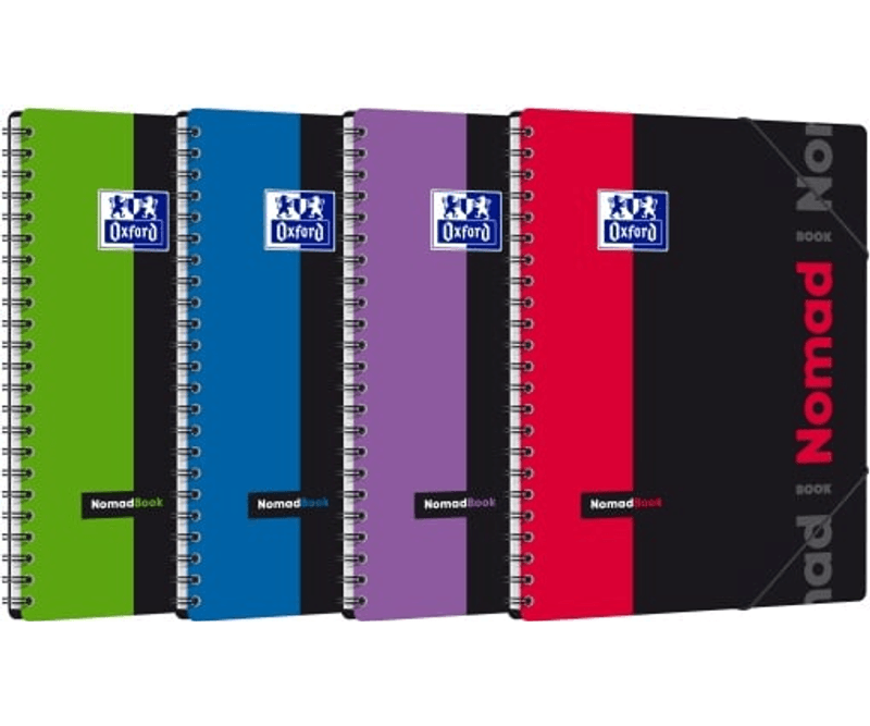 Gama Students, care cuprinde mai multe modele de caiete, a fost conceputa pentru a putea gestiona simultan mai multe materii si proiecte, caietul cu dosar integrat Nomad Book este un caiet cu un dosar cu 3 clape integrat pe coperta spate, perfect pentru transportul si protejarea cursurilor si notitelor tale. Inchiderea cu elastic asigura pastrarea documentelor in siguranta. Clapa laterala poate fi folosita si ca semn de carte.