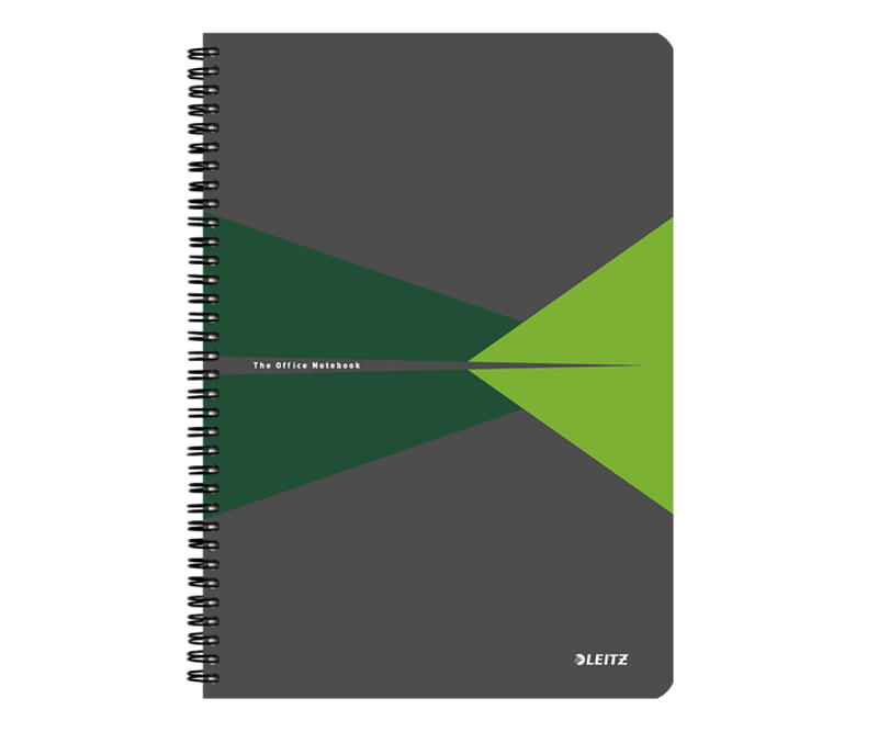 Caiet de birou Leitz Office, PP, certificare FSC, reciclabil, A4, 90 coli, cu spira, dictando, verde