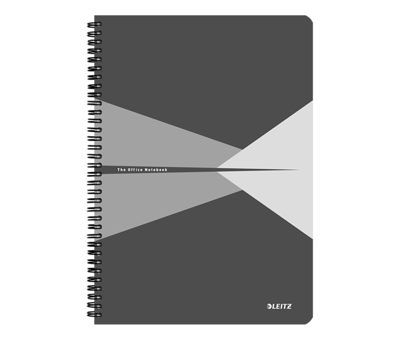 Caiet de birou Leitz Office, PP, certificare FSC, reciclabil, A4, 90 coli, cu spira, matematica, gri