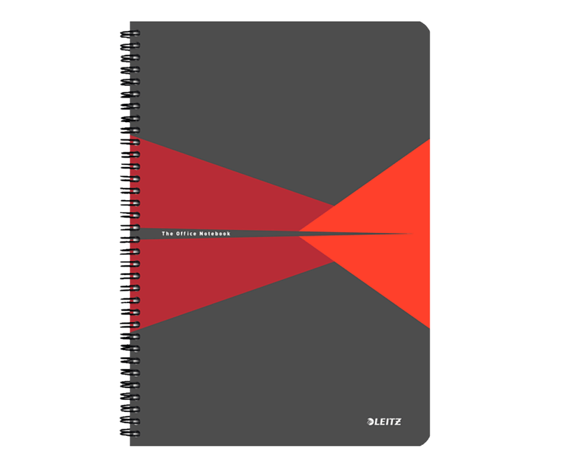 Caiet de birou Leitz Office, PP, certificare FSC, reciclabil, A5, 90 coli, cu spira, dictando, rosu