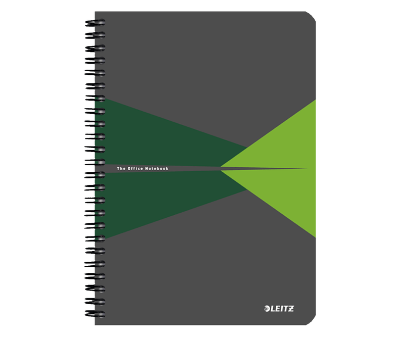 Caiet de birou Leitz Office, PP, certificare FSC, reciclabil, A5, 90 coli, cu spira, dictando, verde