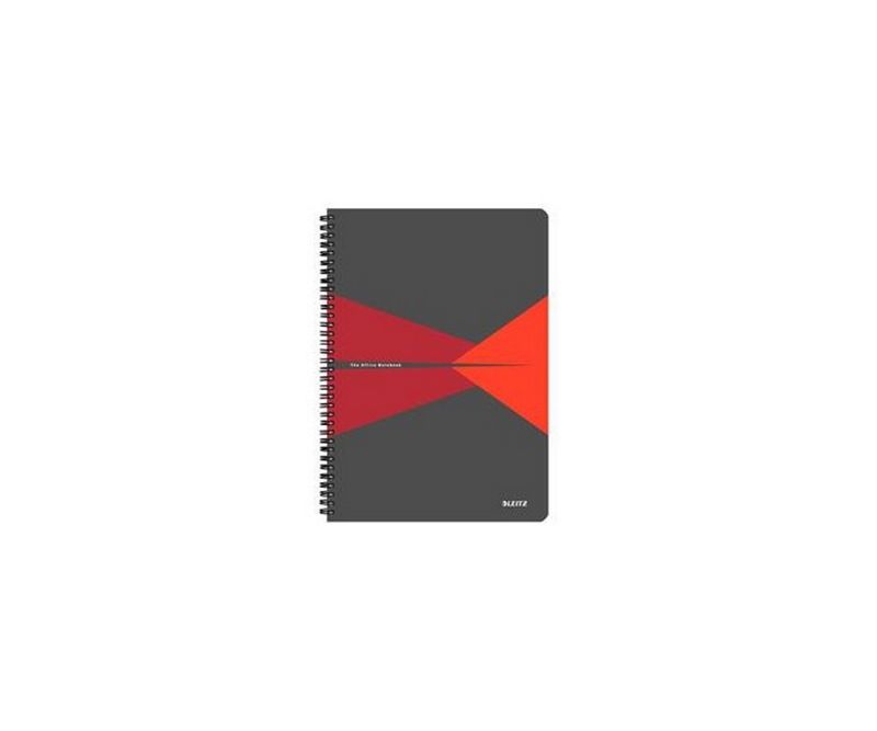Caiet de birou Leitz Office, PP, certificare FSC, reciclabil, A5, 90 coli, cu spira, matematica, rosu