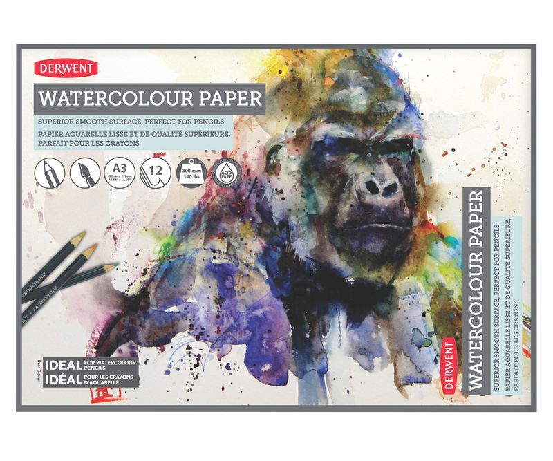 Caiet pentru desen pe baza de apa Derwent Profesional hartie alba A3 12 coli 300 gsm calitate premium
