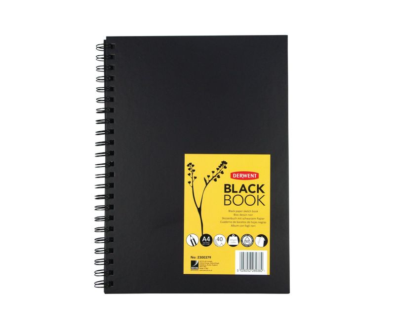 Caiet pentru desen si album foto Derwent Professional, A4, cu spira, 40 coli, 200g, calitate premium, foi negre