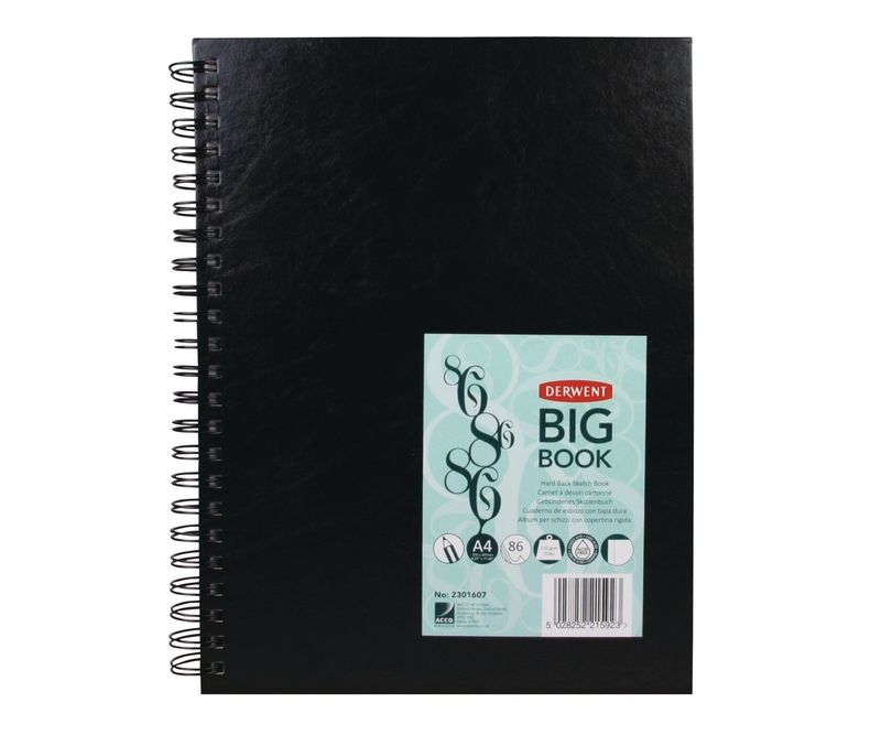 Caiet pentru schite si desen Derwent Professional, A4, cu spira, 86 coli, 110g, calitate premium, negru-vinil