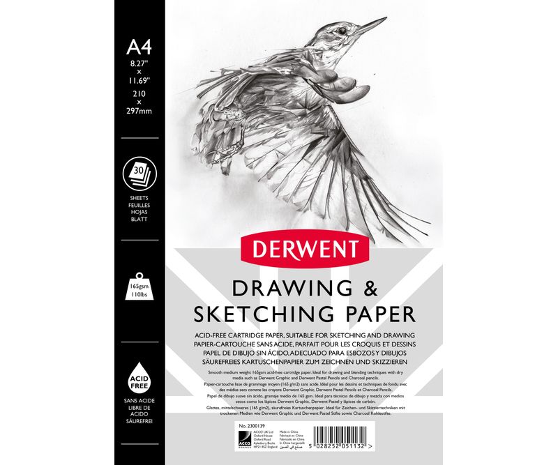 Caiet pentru schite si desen Derwent Professional, A4, cu spira, 30 coli, 165 gsm, hartie alba