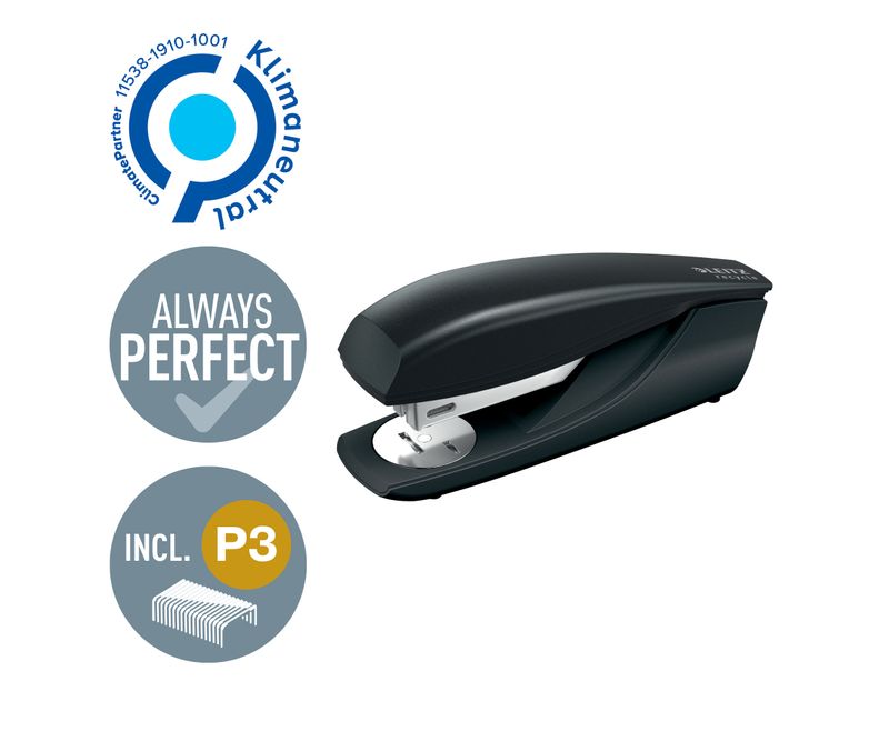 Capsator plastic Leitz Recycle NeXXt Series, din material reciclat si reciclabil, 30 coli, 200 capse P3 incluse, negru