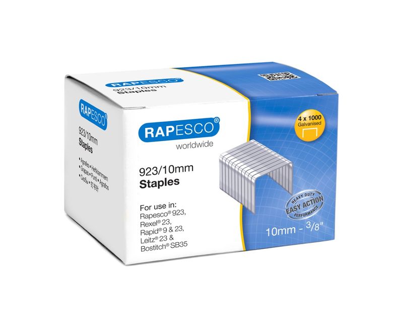 Capse galvanizate Rapesco 23/10mm. Facute la standarde inalte din materiale de calitate superioara, capsele Rapesco ofera o performanta optima pentru o capsarea precisa, de fiecare data. Cutie de 1000 de capse de 23/10 mm.