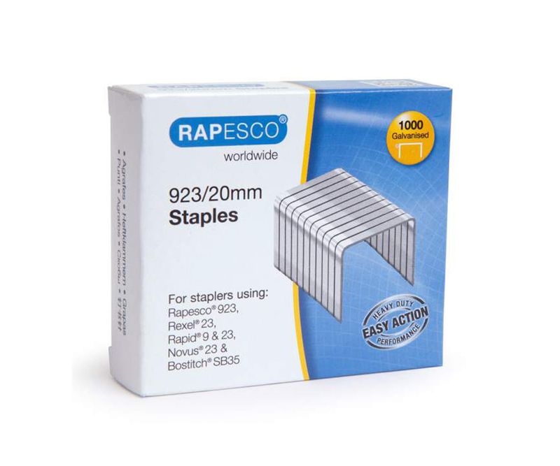Capse galvanizate Rapesco 23/20mm. Facute la standarde inalte din materiale de calitate superioara, capsele Rapesco ofera o performanta optima pentru o capsarea precisa, de fiecare data. Cutie de 100 de capse de 23/20 mm.