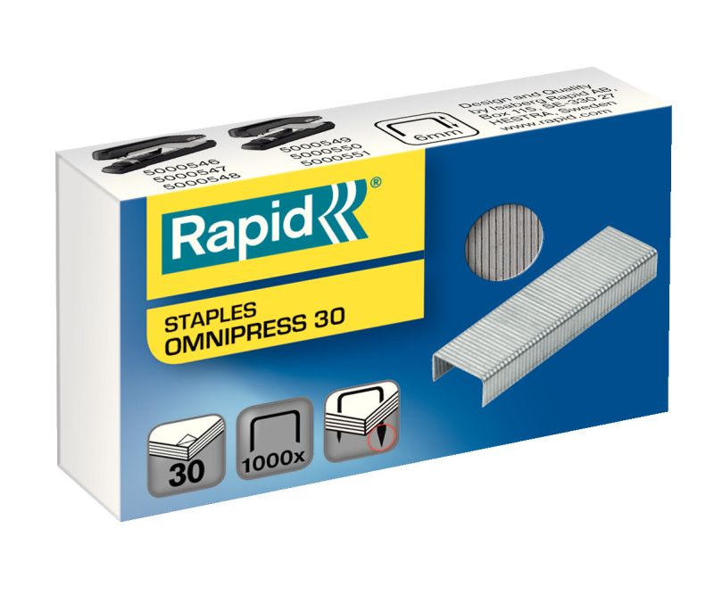 Capse Rapid Omnipress, 6 mm, 2-30 coli, 1000 buc/cutie